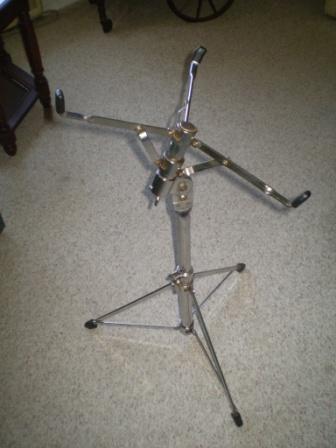 For sale is this vintage and hard to find W&A Buck Rogers snare drum stand from the 60's. Gretsch model #4986. The stand is in very good condition with only some minor pitting. The rubber tips on the feet of the stand have been replaced but the rubber tips on the basket are original. The stand and basket are fully adjustable and in perfect working order.