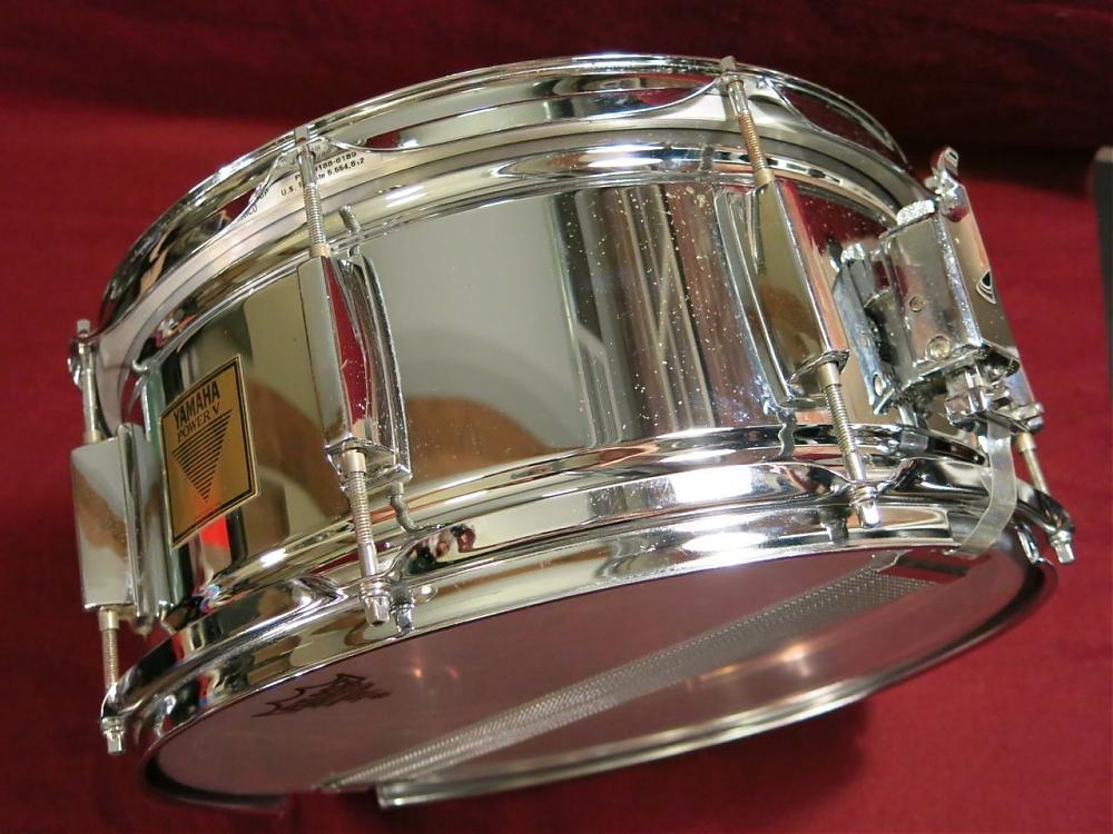 So i believe this is a chrome over brass - however i've been told otherwise. Many of the power v snares didn't have the ridge on top and bottom - plus a magnet acts the same on this drum as it does my cob dynas. Very little attraction which would be from the faint chrome plating? Otherwise, this would be a steel drum. Either way, she's heavy! Sounds great and would make a killer work horse