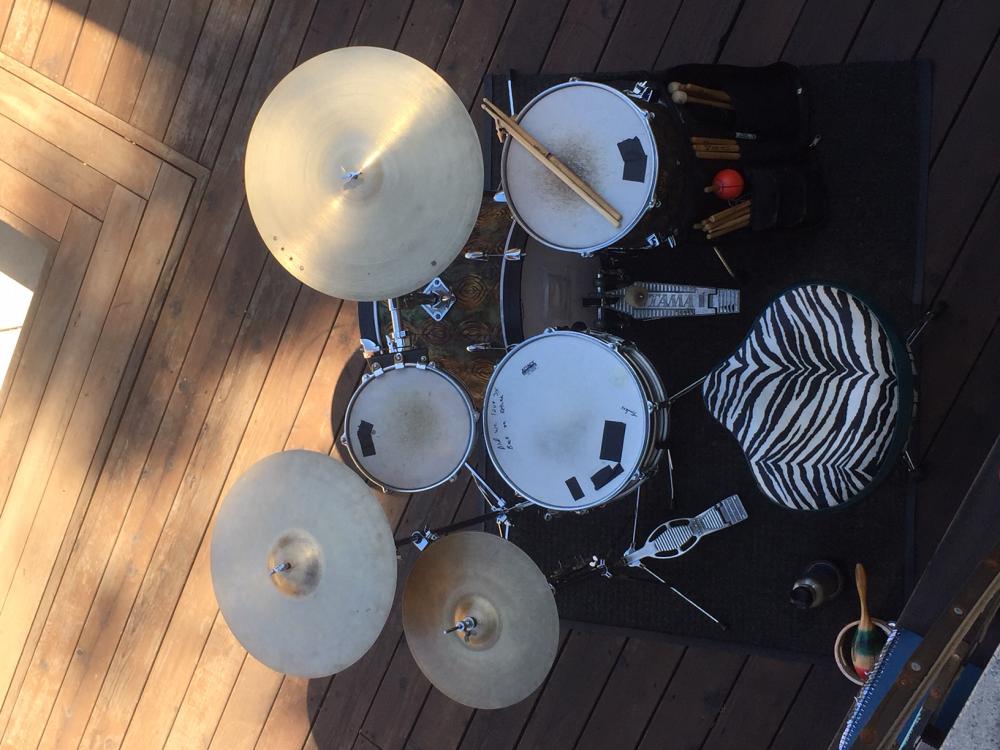 These were orphans that had been messed with so bad nobody wanted them. Even when offered for free! "59 Ludwig bass, '70's Gretsch toms. Holes filled, rewrapped and gigging them happily! Great set for my jazz gigs. They sound great! No worries about outdoors and sun, either.....