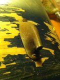 The shell itself isn't really beyond saving, but it's seen better days. Still has the badge and hoops, but paint is flaking off of most of it and there is some separation of the the plies and re-rings. I think it must've gotten wet at some point.