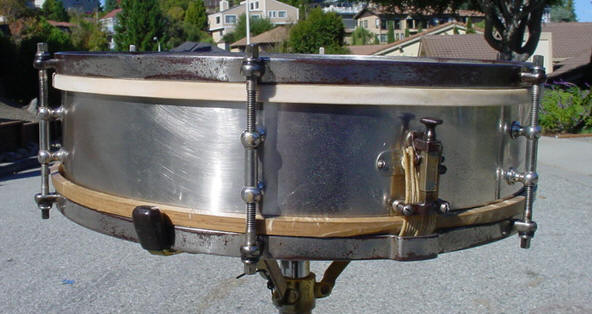 This is the last drum to leave the estate of the late WFL II's (The "Chief" as we knew him) snare drum collection. Special thanks goes to David of The Vintage Drum Forum for brokering the deal and to B III (WFL III) for offering me the opportunity to add this historic drum to my collection. B III also included some nice photos and a letter of provenance.