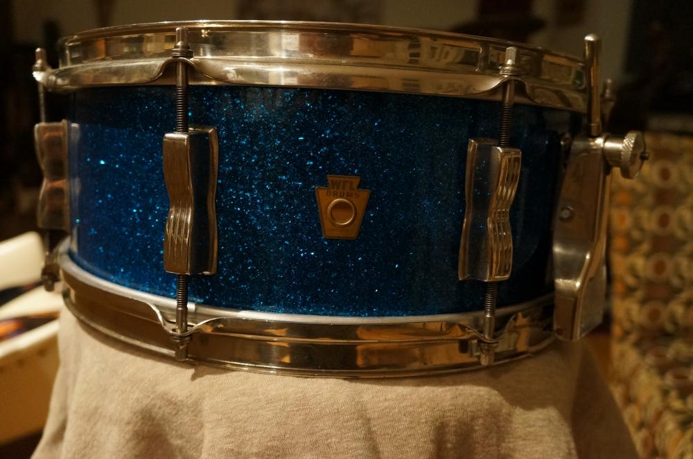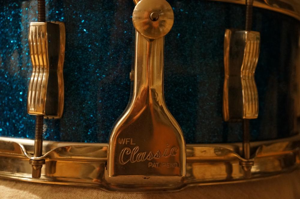 Have a WFL Super Classic ('55-'59) with P87, WFL Diamond Butt in excellent condition. Appears unmolested and original except for snare wires (which are ludwig) and heads in reasonable condition. Hardware is all in great condition (could use a light polish). Strainer and Muffler work great. No extra holes or mods.