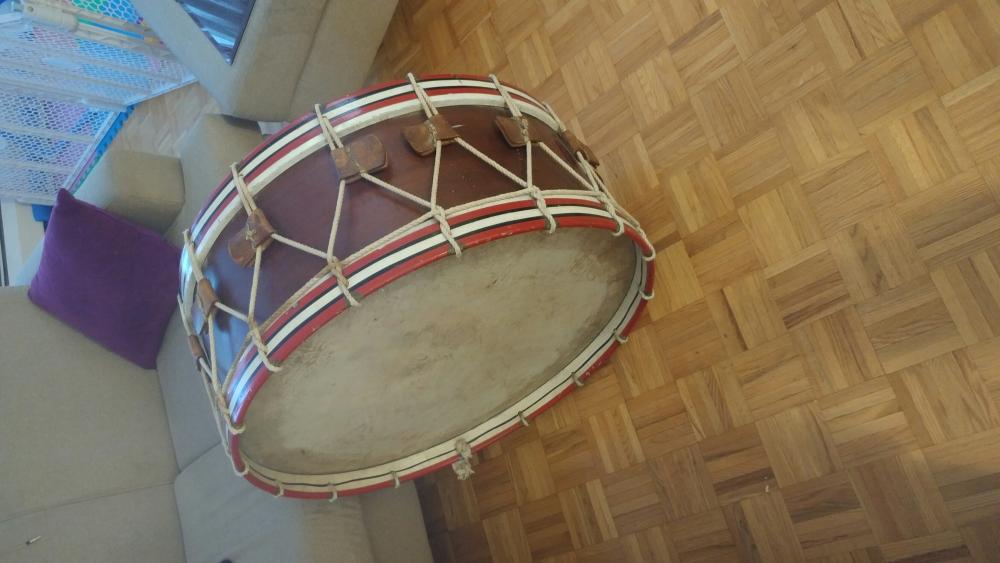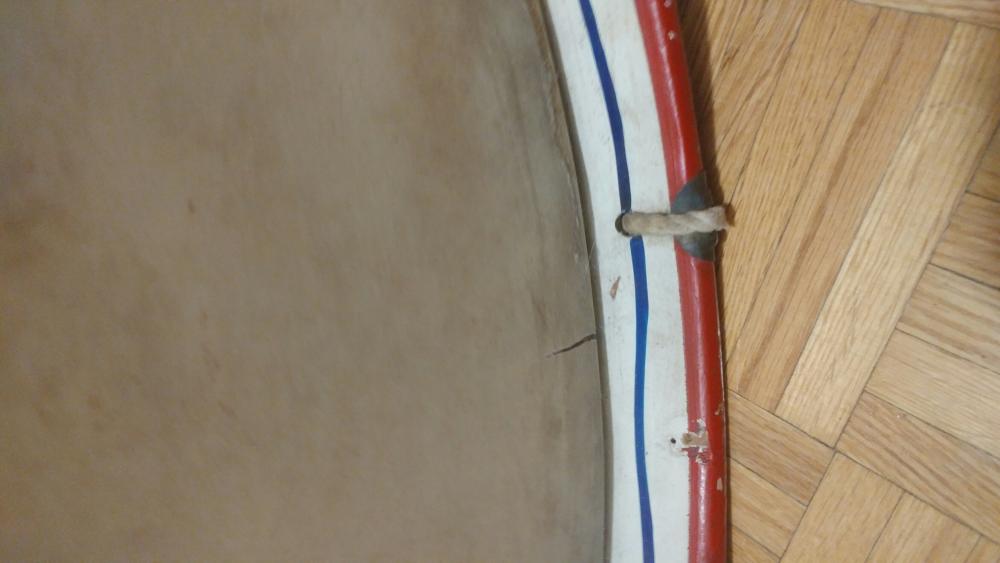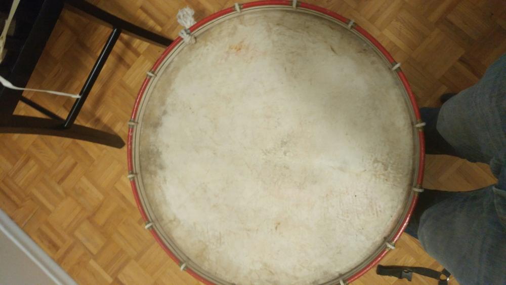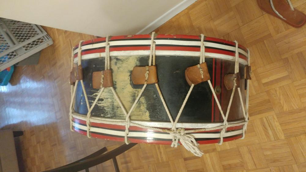 Have found a few old digitized catalogs from the company but not my specific drum. Seems to all be original + used. I've been told that the stain on the drum looks like bust sweat.