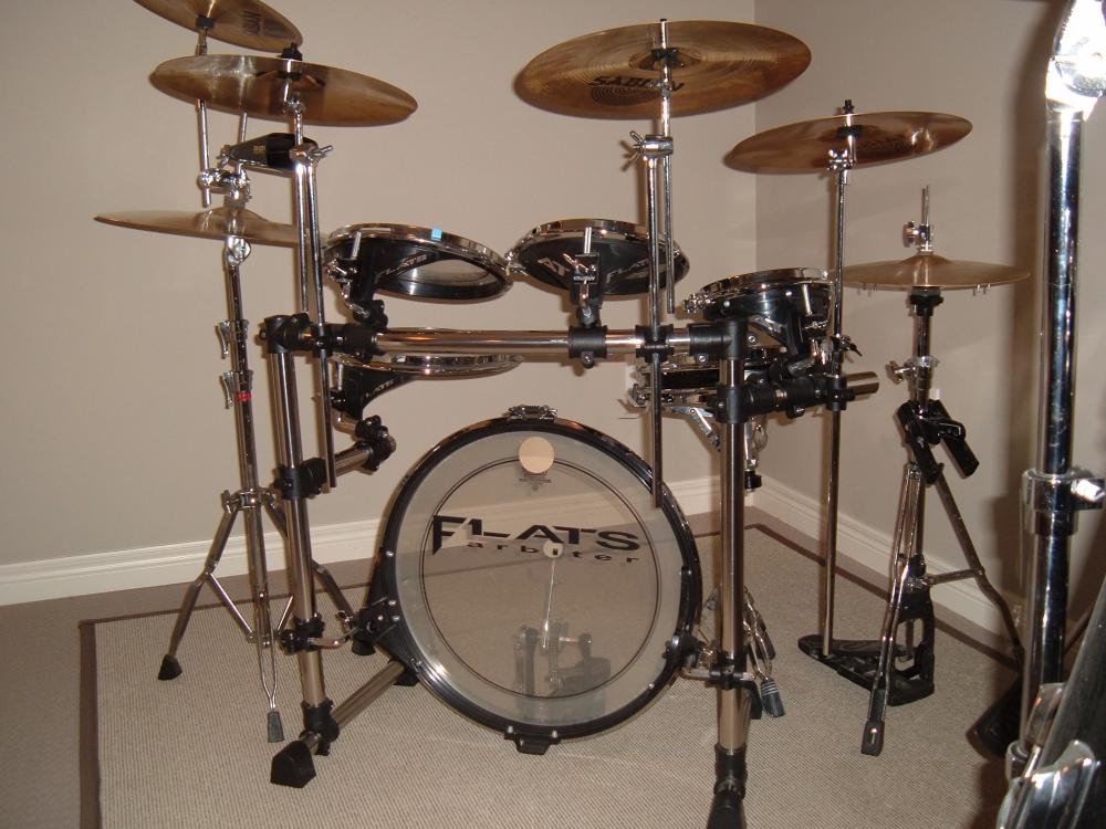 Mine is a Sonor Martini w/ 8 and13 toms, and 12x14 kick. The 12" snare to the left came with the kit. All heads are Remo Silentstroke (hope their logos don't get any larger). Cymbals are Zildjian Gen-16 polished nickel cymbals I found at a great price.