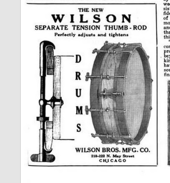 Wilson first made drums and traps, sold Leedy timpani along with his own, and later added banjos just like competitors Leedy and Ludwig & Ludwig, by 1926.