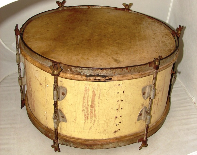 Way cool! Never seen one of these. Check out the lugs…the tension rods are fixed to the lugs and the drum is tensioned via wing nuts. No strainer or snares though…hum.