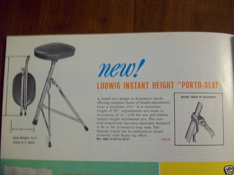 A friend has offered to give me a Ludwig Porto-Seat throne with a missing seat, so I'm looking for the oval shaped seat to go with it. I'm mainly concerned with making sure I get the correct triangle-shaped metal plate and oval wood seat that it mounts to - I can re-cover it if necessary, so any color or condition is OK.