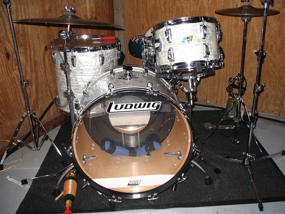 This may be too much to ask. Looking for an excellent shape 60's Slingerland, Ludwig, or Gretsch 4 piece (or 5 with two floor toms) in WMP. 22"-24" bass, 13" tom, 16" FT. All original. Not re-wrapped or plugged.