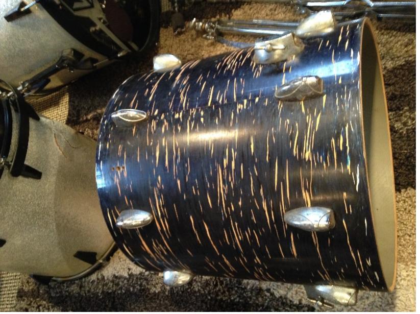 In an effort to slow down and take my time (and pictures) on a project, I'm starting this thread. I picked up what I believe is a later DT-225 a couple months ago that is in need of some serious TLC. Came with a chrome snare, 12,13,16 and 20" drums. Wrap is faded, dirty and dull, and the chrome is pitted severely. I picked up a donor bass drum for the lugs already, and some later Tour lugs (same style, just with the clip instead of the spring), and just today got the matching snare off Goodwill. This will be a work in progress as I'm in the middle of moving, but here are a few pictures. Stay tuned!