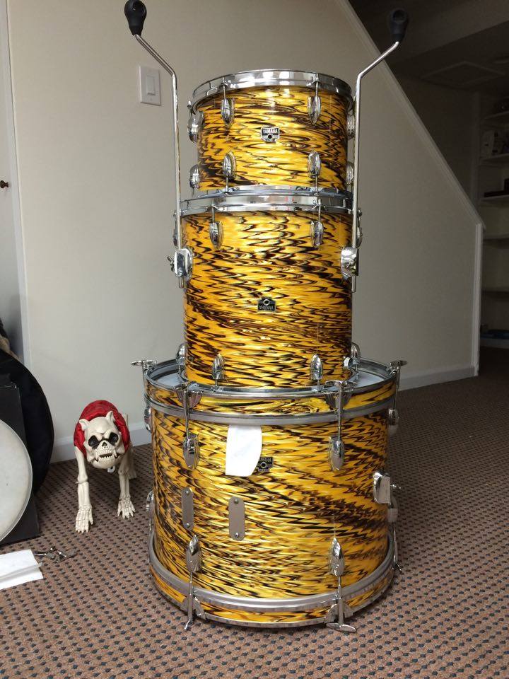 So I am planning to pick this kit up from a guy on FB. He sent me more photos than I can shake a stick at and this kit is truly in beautiful shape. Missing the rail mount on the bass, but no extra holes, not a re-wrap, no real dings or dents. I mean the kit seriously is beautiful. Sizes are 12",14",20" even comes with a matching 14" snare ( though if I do get this kit, that snare is never leaving the collection,lol ) He is asking $850 which to me seems more than fair given the age, condition, and somewhat rarity of this wrap. Just figured I would see what you guys all thought before I went ahead as I plan to. Probably won't be getting it until next week. But man are they pretty.
