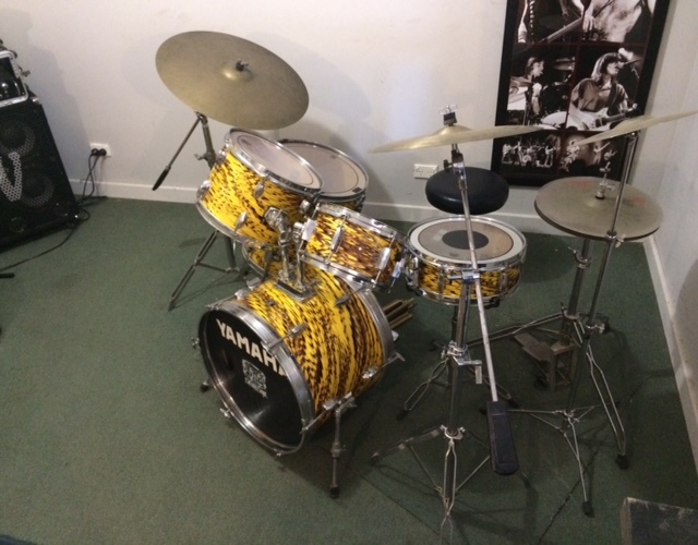 I forgot to mention that the inlay on one of the bass drum hoops was replaced by harvesting the Golden Dragon wrap from a badly damaged mounted tom donated by another mutual drum friend of my seller and I Thanks again Andrew ...Kenwood