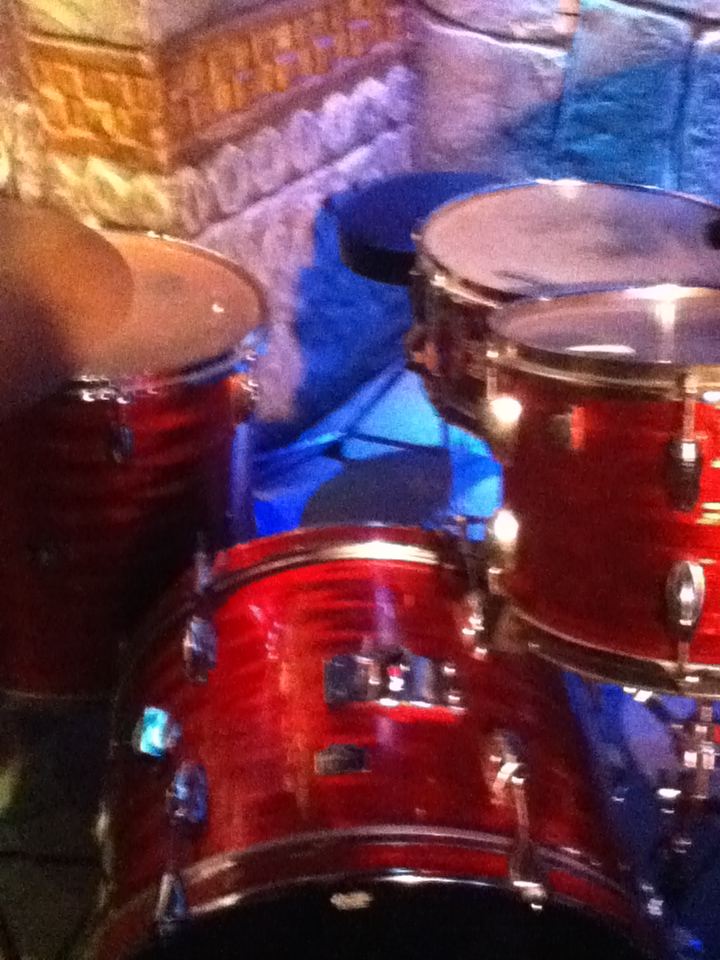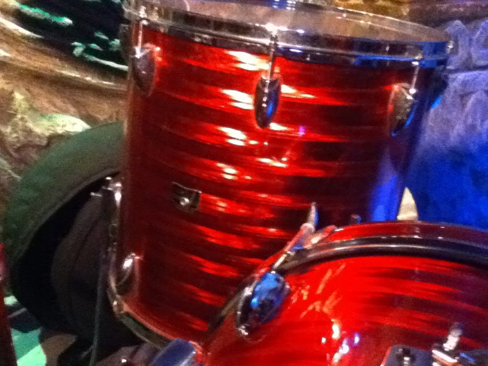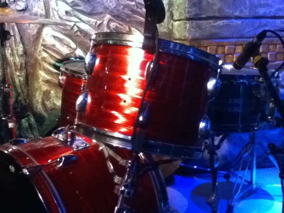 The technician thought the bass drum needed some muffling and the kick wasn't ported so I gladly offered to do it, just to get a look at the shells. They are really light so I was curious. Anyway, the owner of the drums (who turns out not to be the bar owner) showed up while I was hunched over on stage with his kick drum opened up. I felt a little embarrassed, but he knew who i was by reputation and actually got a chuckle out of it. Turns out it was his dads kit, bought 1n 1974, and will stay it his family.