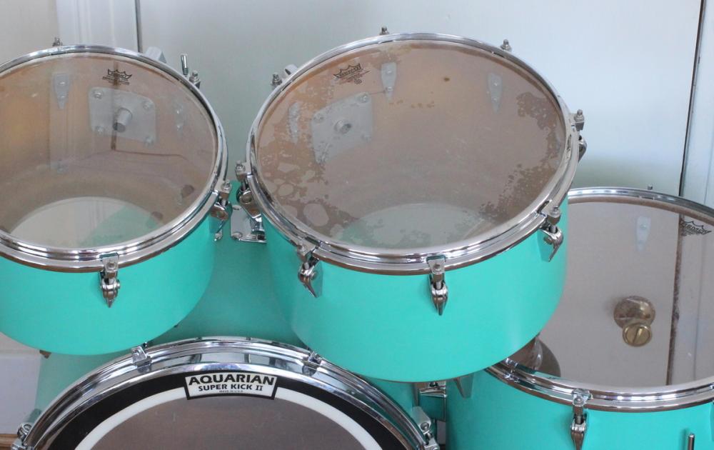 I posted a thread a short while back about this kit when I bought it. It was originally white, hand painted with some awful flames and flowers like a prison tattoo. But it was complete, and all original except for the tom arms.