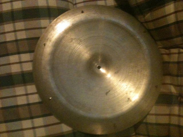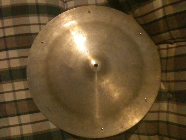 Bought it used and never use it so out it goes. 18" Zildjian Swish with factory rivet holes, non-factory rivets. 1 1/4" very faint stamp. 1265 grams. $140 shipped to you.